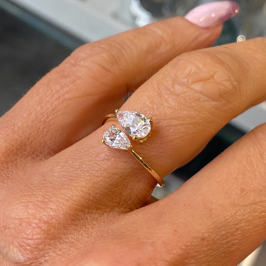 Sold out9ct Gold Moi Et Toi Pear CZ Ring