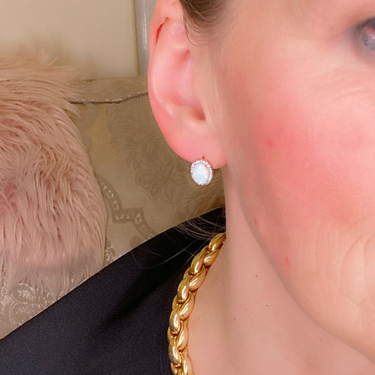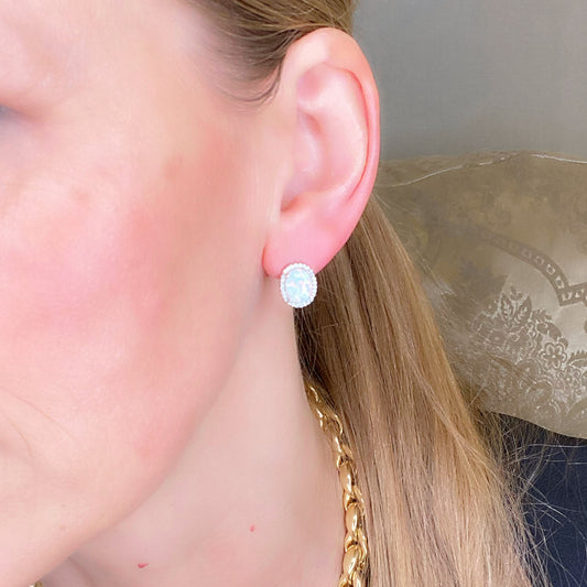 9ct Gold Oval Opalique Stud Earrings with Beaded Edge