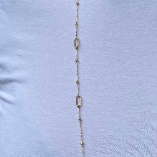 9ct Gold Paper Link & Diamond Cut Bead Long Necklace