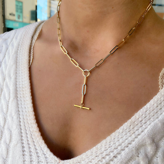 Sold out9ct Gold Paper Link T-Bar Necklace