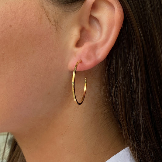 9ct Gold Round Skinny J Hoop Earrings