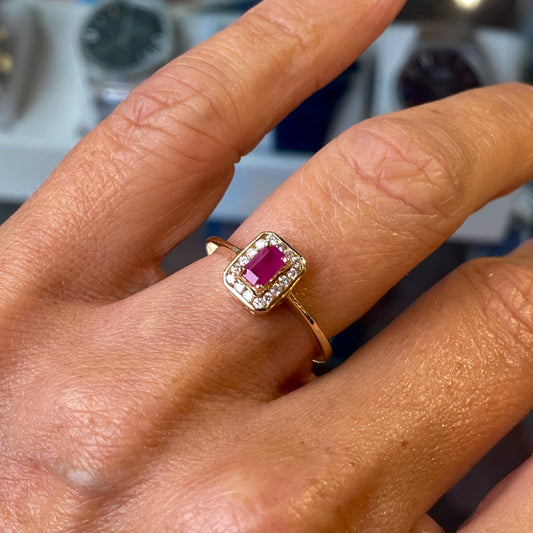 9ct Gold Ruby & Diamond Deco Ring