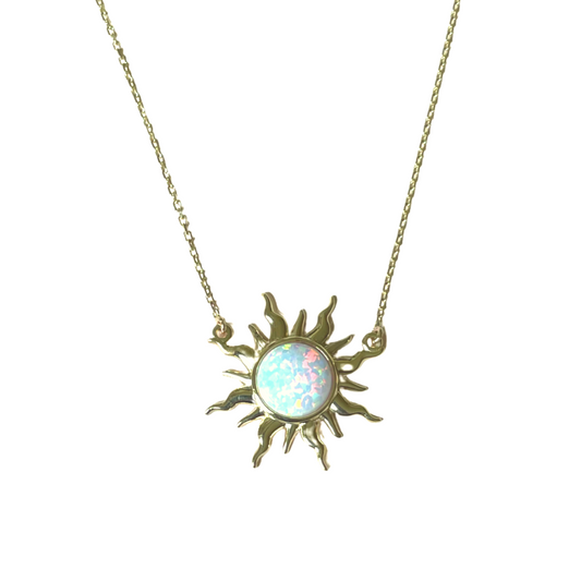 9ct Gold Round Opalique Sun Pendant Necklace