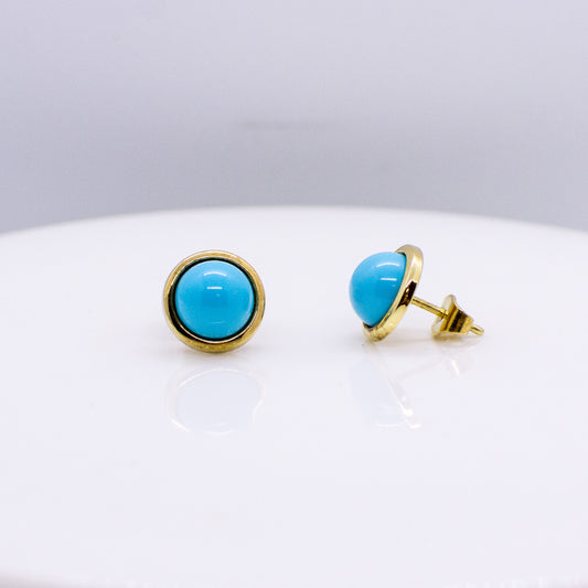 9ct Gold Round Turquoise Stud Earrings