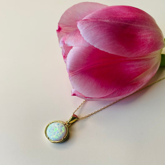 9ct Gold Round Opalique Pendant Necklace