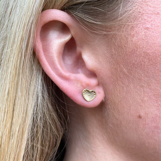 Sold out9ct Gold Sunray Heart Stud Earrings