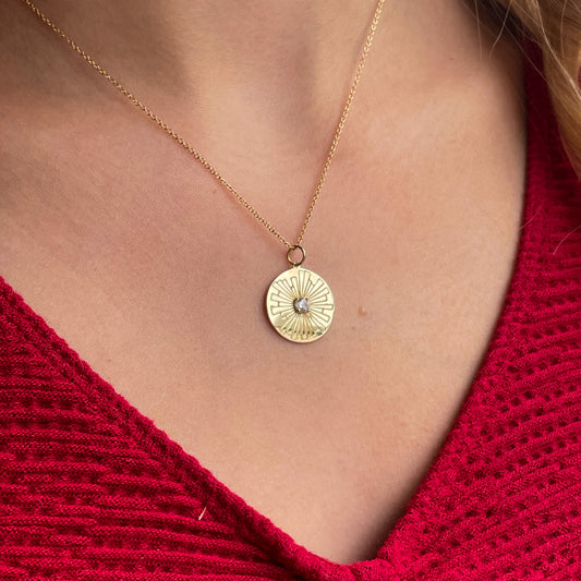 9ct Gold Sunbeam Heart Locket and Chain | Medium