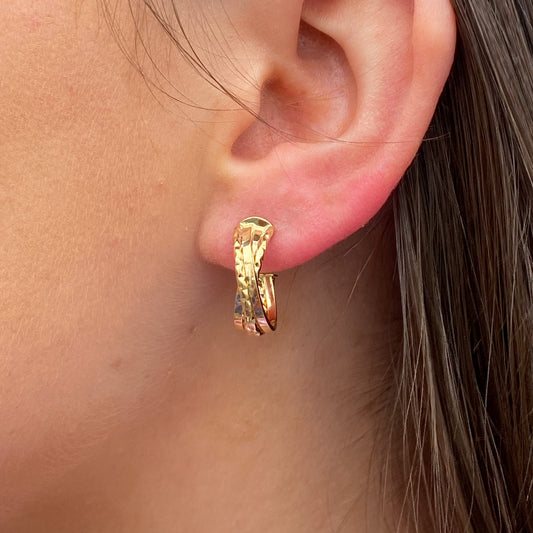 9ct Gold Textured Twist J Hoop Earrings