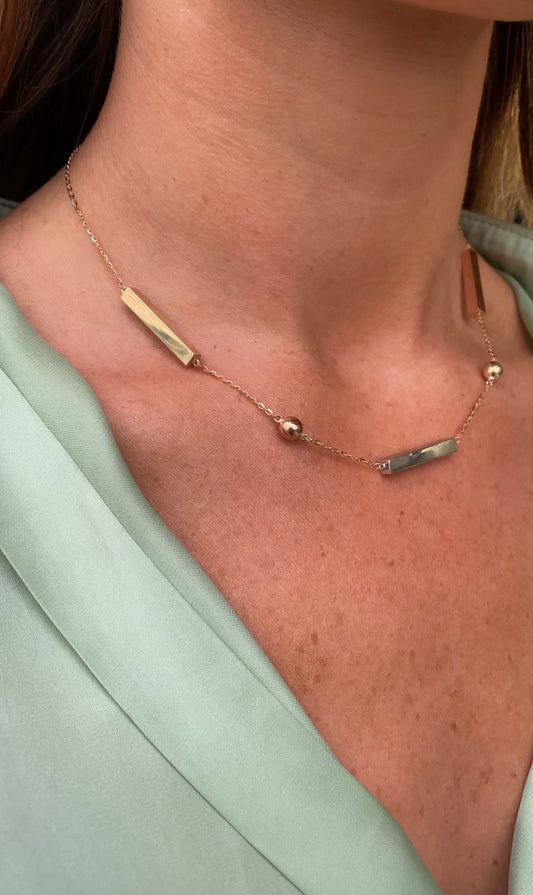 9ct Gold Three Tone Bar & Bead Necklace