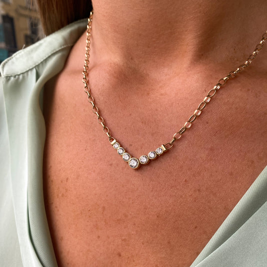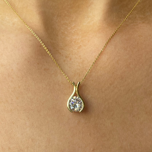 9ct Gold Wishbone Half Rubover CZ Solitaire Necklace