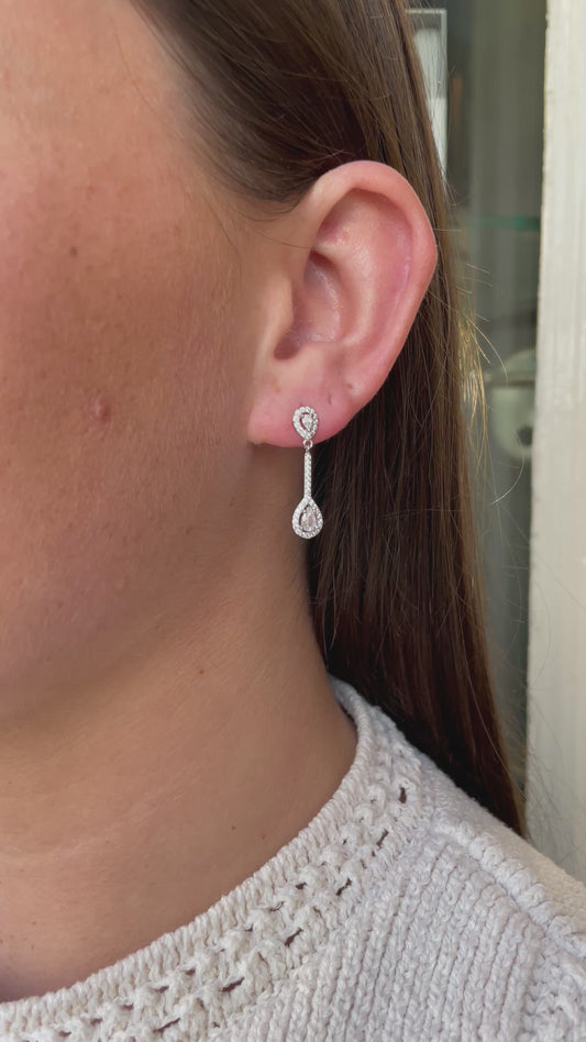 Silver CZ Pear Halo Drop Earrings