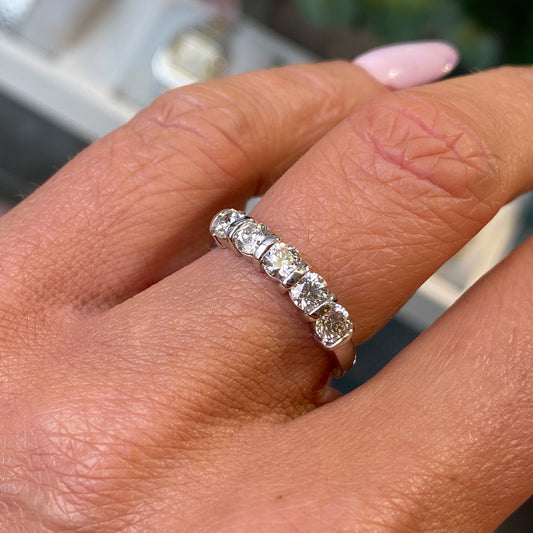 18ct White Gold Bar Set Five Stone Diamond Eternity Ring | 1.04ct