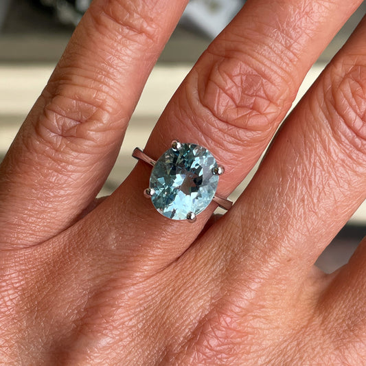 18ct White Gold Aquamarine Solitaire Ring | 5.22ct