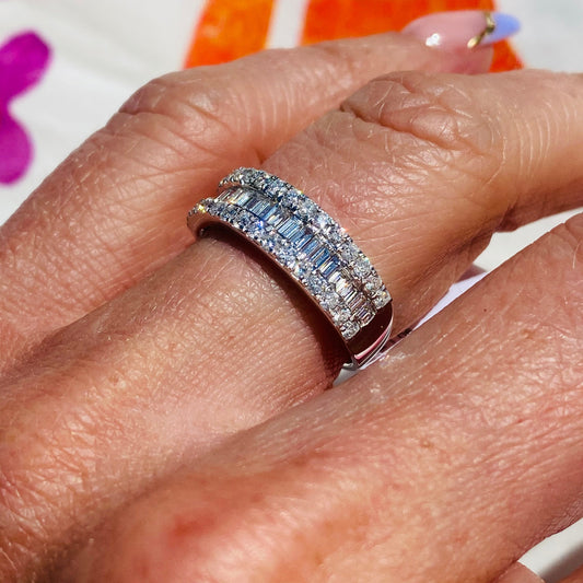 18ct White Gold 1.15ct Diamond Cluster Band Ring | Baguettes