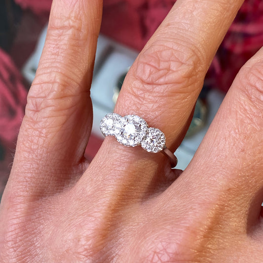 18ct White Gold 0.89ct Diamond Trilogy Garland Ring