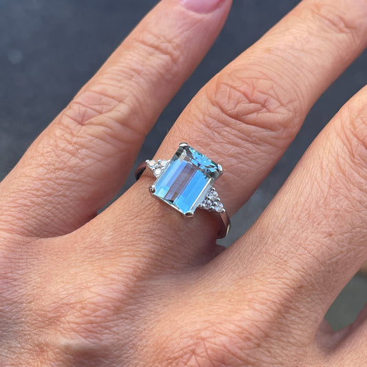 18ct White Gold Aquamarine & Diamond Ring | 2.95ct