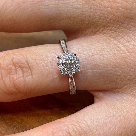 18ct White Gold 0.43ct GHSI Square Cluster Diamond Ring | Diamond Shoulders