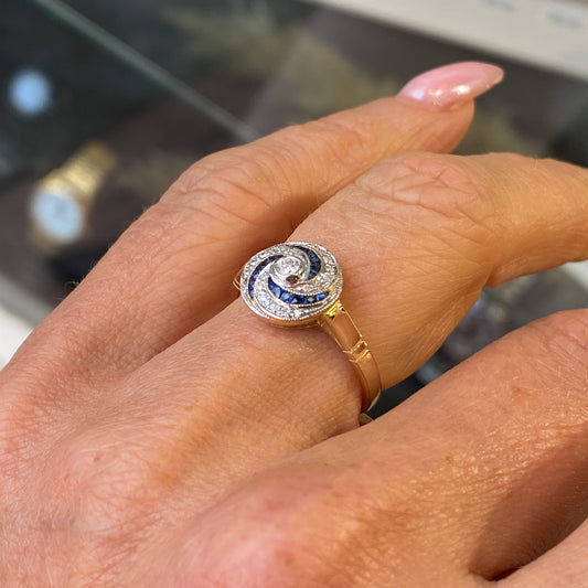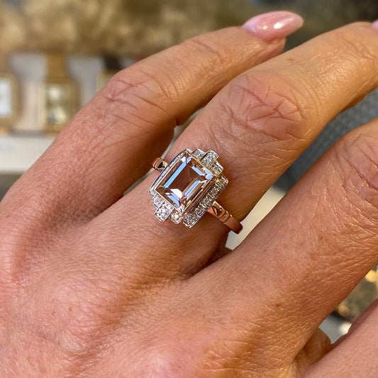 9ct Gold Sky Blue Topaz & Diamond Dress Ring - Croix