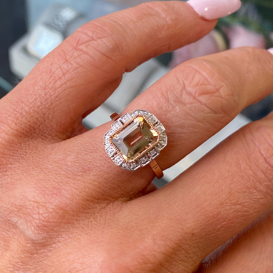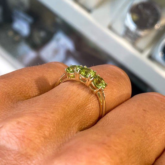 9ct Gold Trilogy Ring - Pink Topaz & Tourmaline