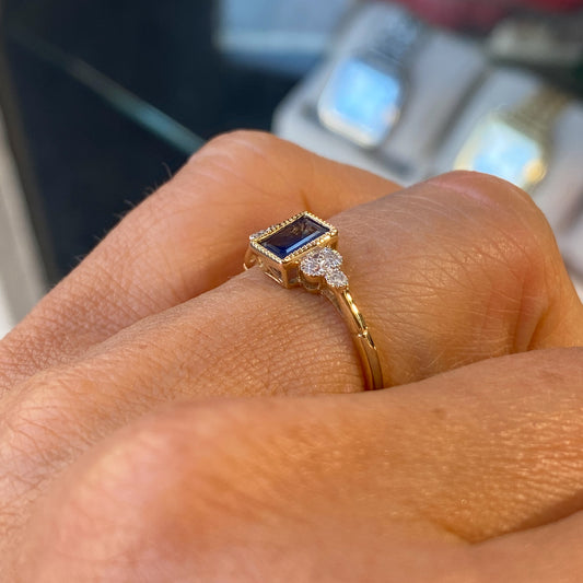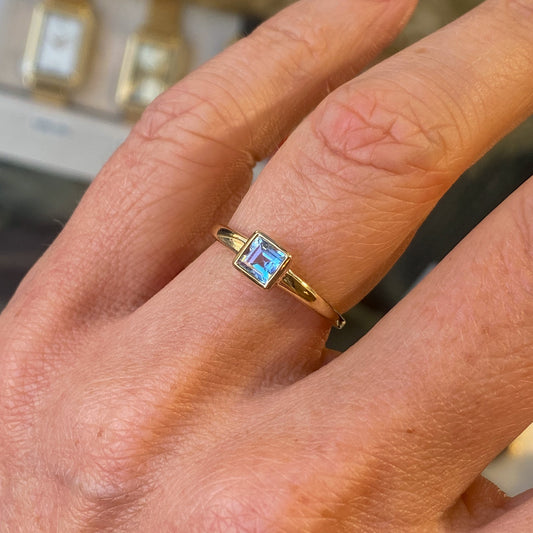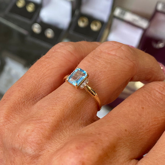 9ct Gold Square Solitaire Ring - Blue Topaz