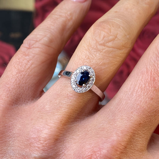9ct White Gold Sapphire & Diamond Stud Earrings