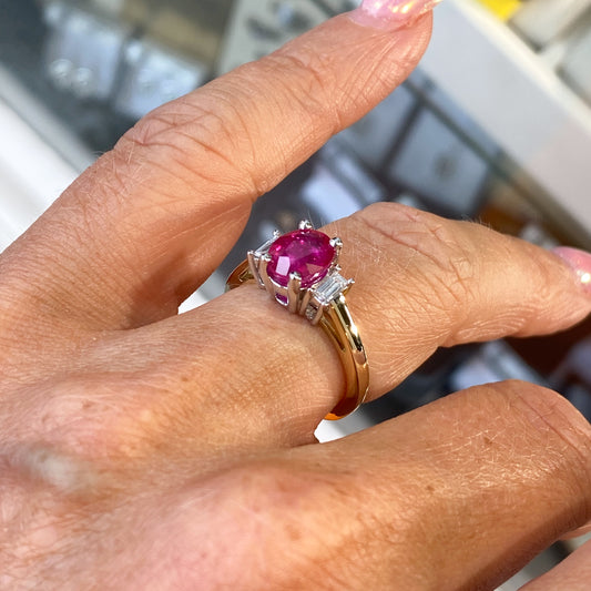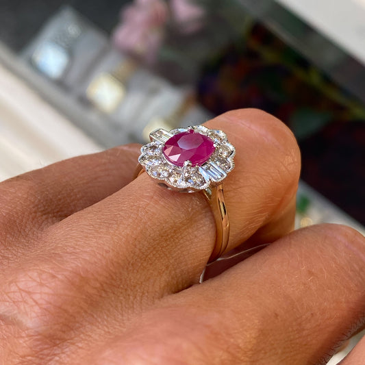 18ct Gold Ruby & Diamond Oval Cluster Ring