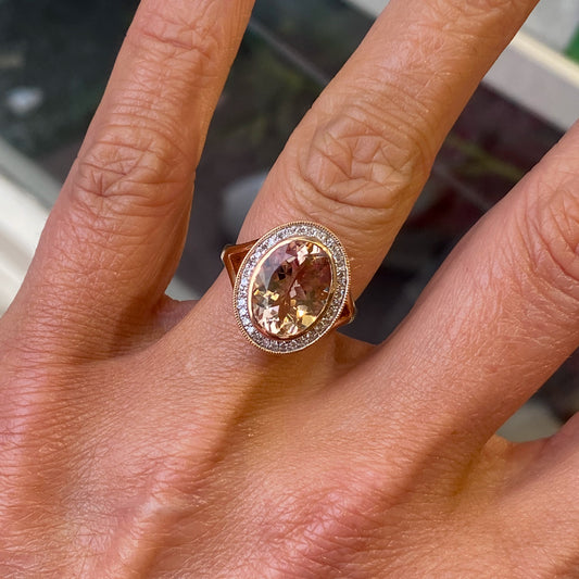 14ct Rose Gold Morganite & Diamond Ring | 3.60ct