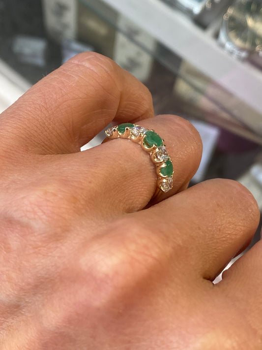 9ct Gold Graduated Eternity Ring - Emerald & CZ