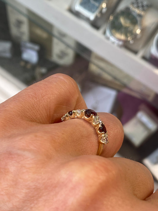 9ct Gold Graduated Eternity Ring - Garnet & White Topaz