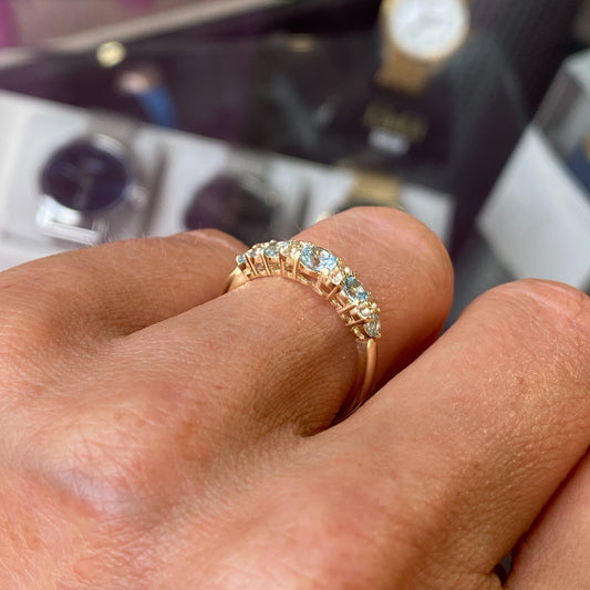 9ct Gold Graduated Eternity Ring - Blue Topaz & White Topaz