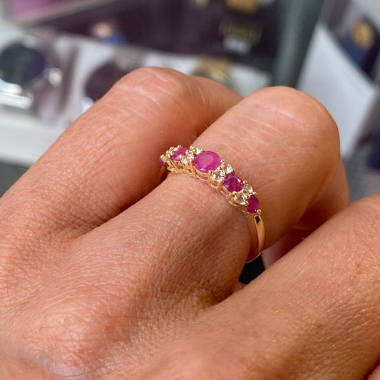9ct Gold Graduated Eternity Ring - Ruby & White Topaz