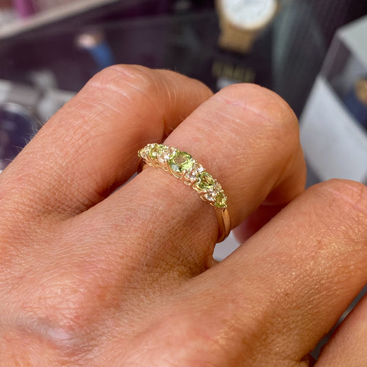 9ct Gold Graduated Eternity Ring - Peridot & White Topaz