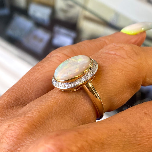 9ct Gold Opalique & CZ Round Stud Earrings | 8mm