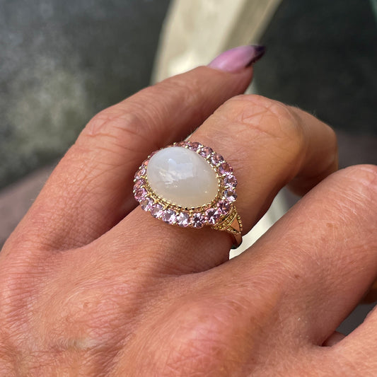 9ct Gold Moonstone & Pink Tourmaline Ring