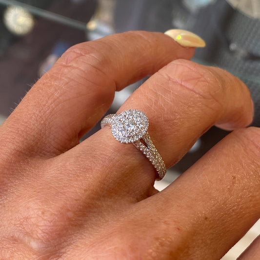 9ct Gold Oval Solitaire Cluster Engagement Ring with Shoulders | 0.56ct