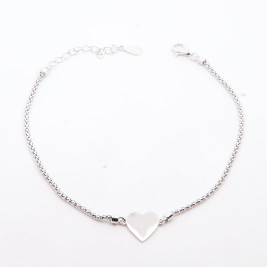 Silver Heart Discs Snake Chain Anklet | 25cm