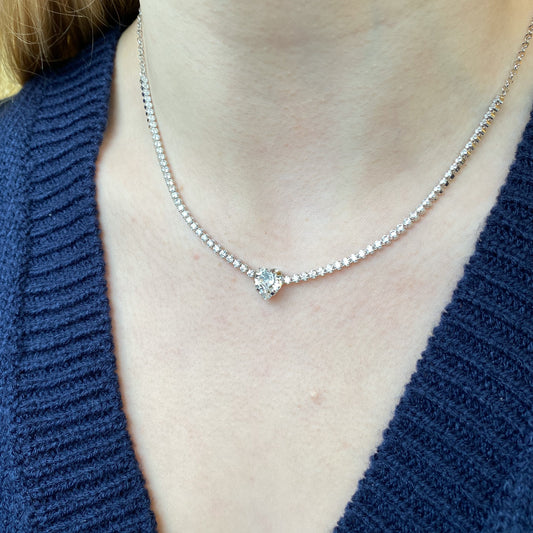 Silver Heart Blue Opalique & CZ Halo Necklace