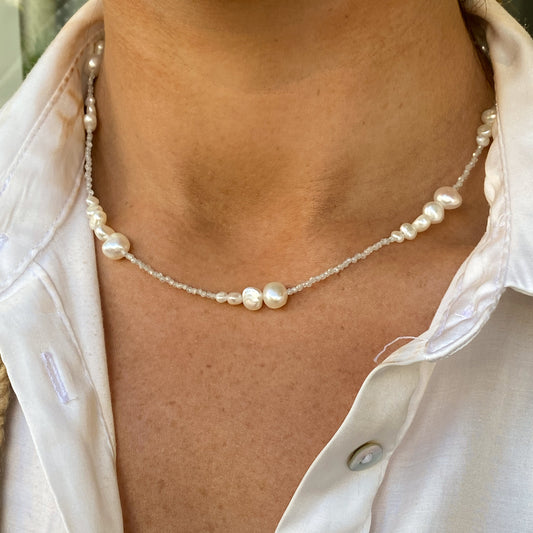 Cultured Freshwater Pearl & Zirconium Necklace
