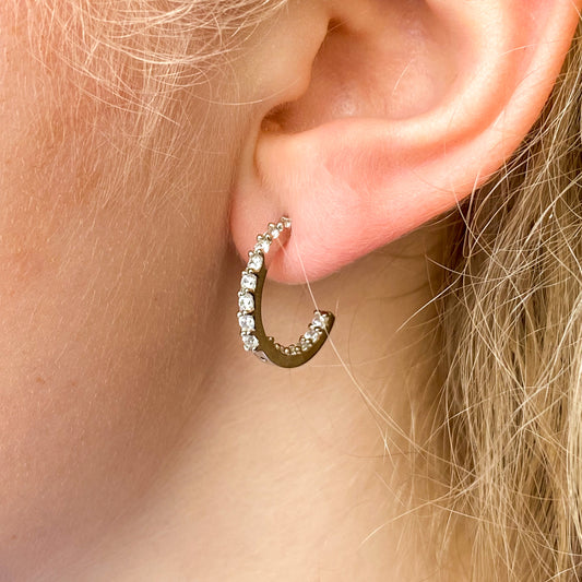 Silver Inside Outside CZ Hoop Earrings | 15mm