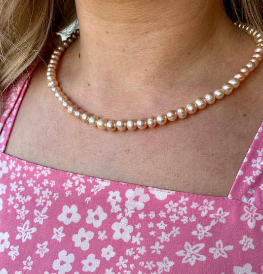 Peach Cultured Freshwater Pearl Necklace | 6-7mm