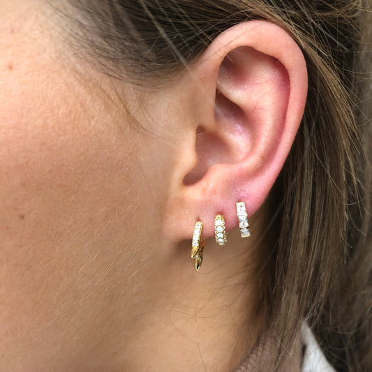 Ear Candy Trilogy CZ Huggie Earring | Gold Plated