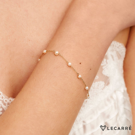 18ct Gold Freshwater Pearl Station Bracelet | 18cm