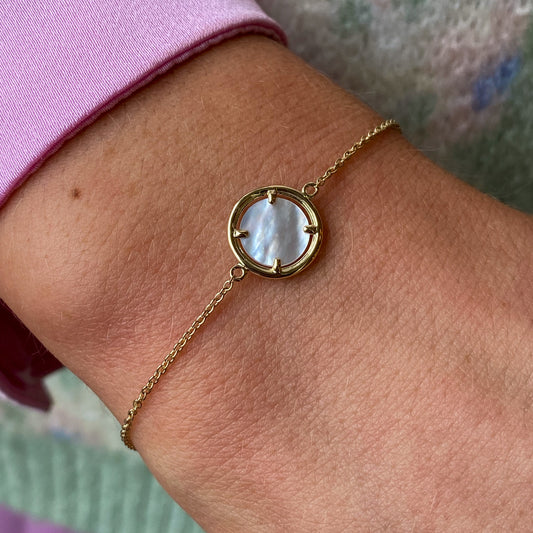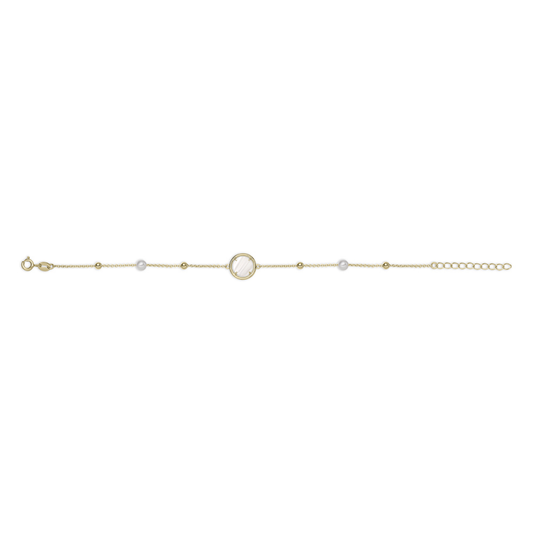 14ct Gold Mother of Pearl , Pearl & Bead Station Bracelet