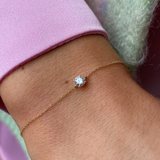 14ct Gold CZ Solitaire Bracelet | 4mm