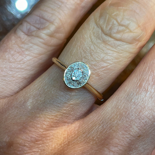 9ct Gold Oval Cluster Engagement Ring | 0.16ct