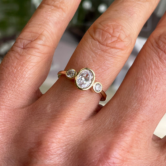 Sold out9ct Gold Oval Trilogy CZ Ring