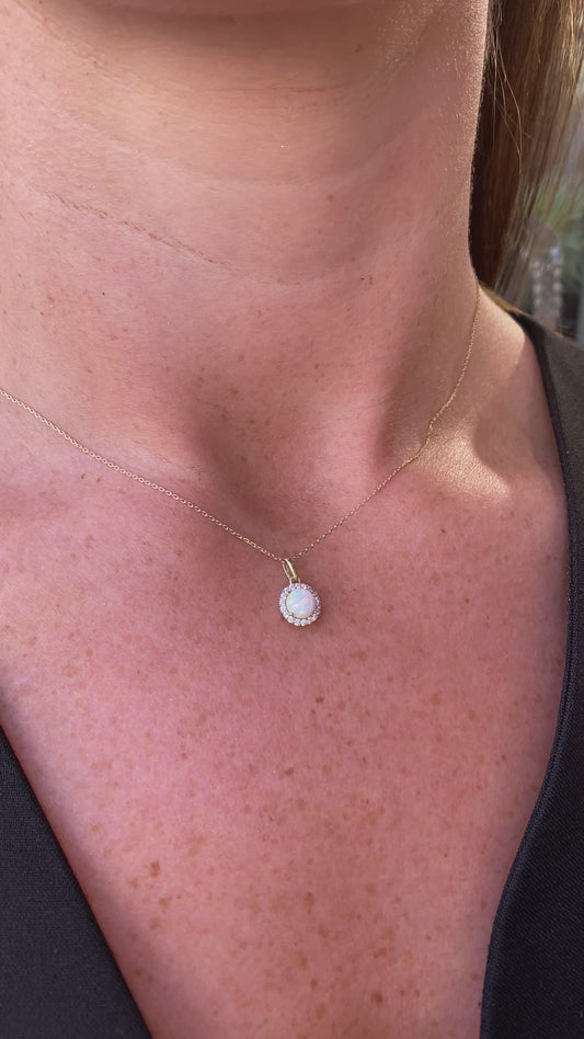 9ct Gold Round Opalique & CZ Pendant Necklace