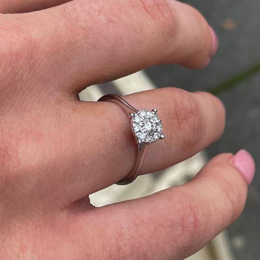 9ct White Gold 1.05ct GHSI Square Cluster Diamond Ring | Diamond Shoulders