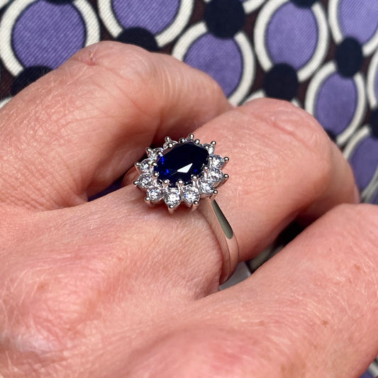 9ct White Gold Created Sapphire & CZ Ring