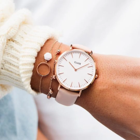 CLUSE Boho Chic Leather Strap Pink/Rose Gold
